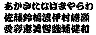 | 当店でご用意しているフォント(字体)サンプルです。下記以外にもたくさんの種類がありますので、ご希望のフォントが見つからない方、手書きの書体やオリジナルの字体をご希望の方はお問い合わせ下さい。 |