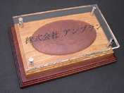 | V溝彫りサンプル、ベーシックセット(立体彫り、ケヤキのスタンドの完成品)、立体彫りサンプル。 |
